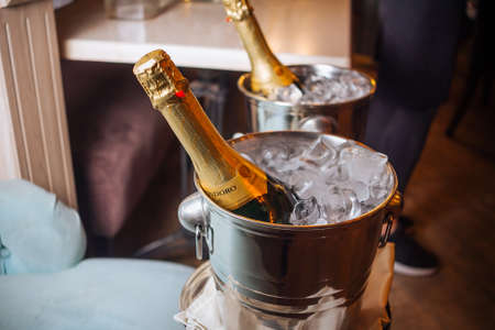 Italian sparkling wine fresh in the ice, ambient light