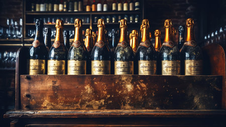 A Row of Champagne Bottles Filled With Sparkling Liquid
