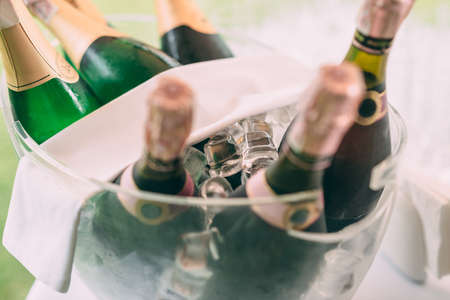 Assortment of champagne placed in ice bucket