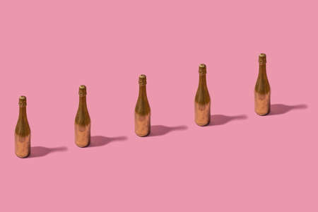 Pattern made of champagne bottle painted in gold color