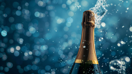 Experience the moment of celebration with this stunning image of a champagne bottle bursting open, capturing the vibrant sparkle and splash in exquisite detail. AI generated