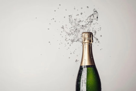 A close-up of a champagne bottle popping with liquid splash, symbolizing celebration, luxury, and festive joy.