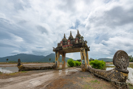 a statue at a temple on the Mount Phnom Sompov near the city of Battambang in Cambodia. Cambodia, Battambang, November, 2018