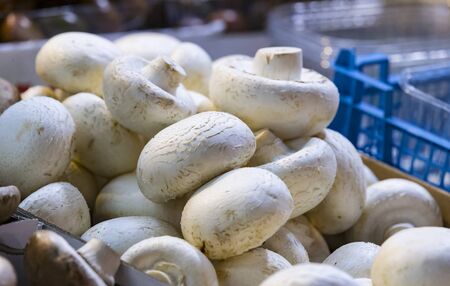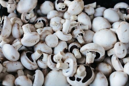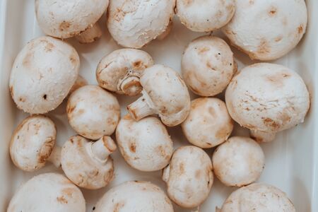 Fresh champignon mushroom vegetable in the kitchen - fresh mushroom vegetable cooking concept