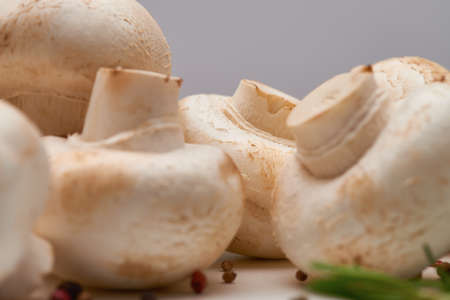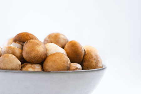 Fresh champignons, champignon mushrooms, close-up, isolated