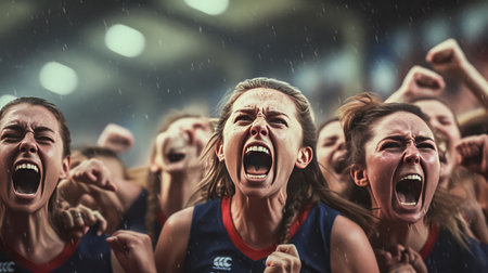 Sport fans cheer and celebrating a winning tournament in stadium. Generative AI