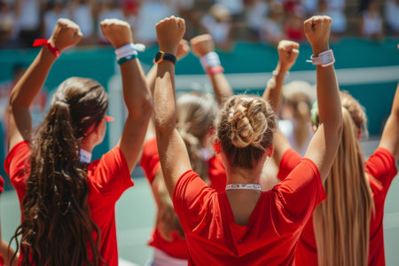 Celebrate the power of teamwork as a womens team exuberantly rejoices in victory. The collective joy and triumph radiate the spirit of successful collaboration.