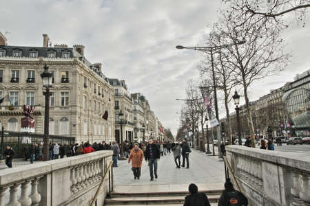 PARIS, FRANCE - February 20: The Champs-Elysees, on February 20, 2015 in Paris, France. Tourists stroll at The most famous avenue of Paris has 1910m and is full of stores, cafes and restaurants