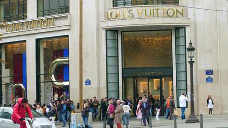 PARIS, FRANCE - OCTOBER 7, 2017. Luxury Louis Vuitton store on Champs-Elysees street