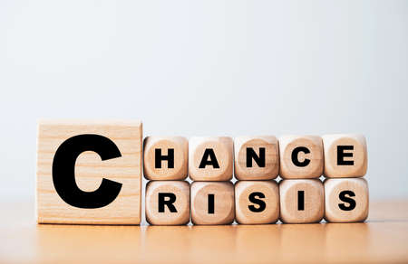 Chance and crisis wording print screen on wooden cube block for people positive and negative mindset in the same situation concept.