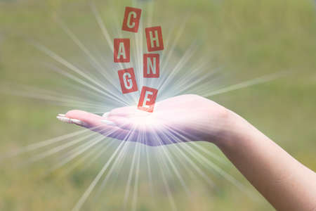 Hand Changing word from CHANGE to CHANGE On Wooden Cube