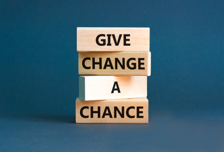 Give change a chance symbol. Concept words phrase Give change a chance on beautiful wooden blocks. Beautiful gray paper background. Business Give change a chance concept. Copy space.