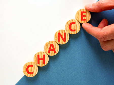 Motivational and inspirational word - ‘CHANCE ’ written on wooden blocks. Blurred styled background.