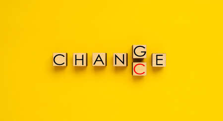 Wooden cube flip with word change to chance. Career growth and development concept.