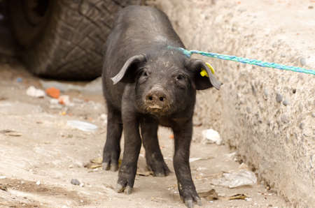 Pig on the farm. Bad conditions, pets