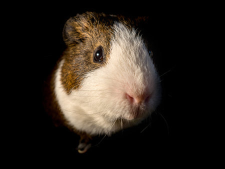 pet guinea pig looks at a white background