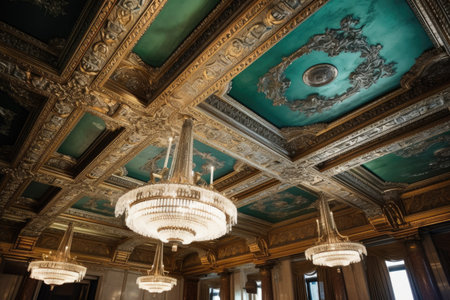 ornate ceiling details showcasing ballrooms opulence, created with generative ai