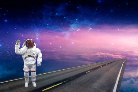 Astronaut spaceman do spacewalk while working for space station in outer space . Astronaut wear full spacesuit for space operation . Elements of this image furnished by space astronaut photos.