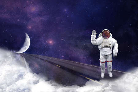 Astronaut at spacewalk. Mixed media