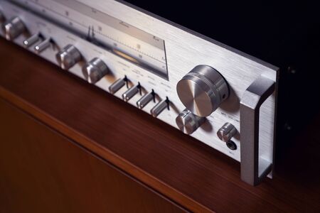 Vintage Hi-Fi Electronics. Brushed metal vintage electronic amplifier