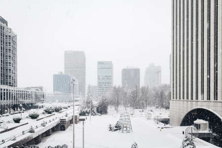 Urban buildings in the snow