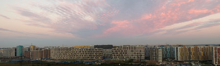 Beautiful winter sunset over the city. Panoramic image.