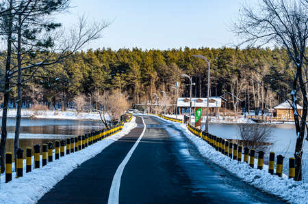Scenery of Jingyuetan National Forest Park in Changchun, China after snow