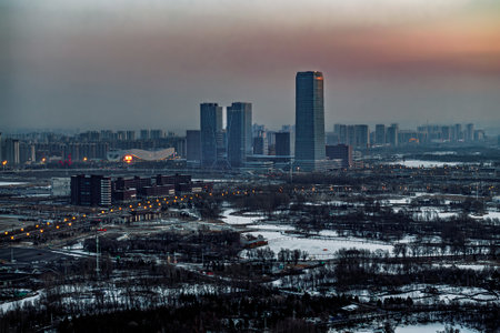 City landscape of Changchun, China after snow