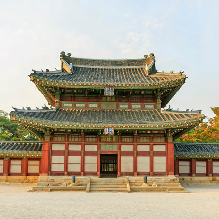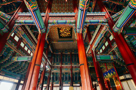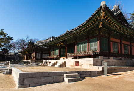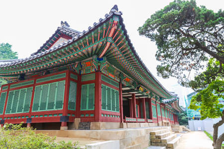 Colorful Huijeongdang Hall of Changdeokgung Palace in Seoul, South Korea. Amazing traditional Korean palatial architecture. Changdeokgung Palace is a popular tourist attraction of Asia.