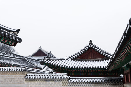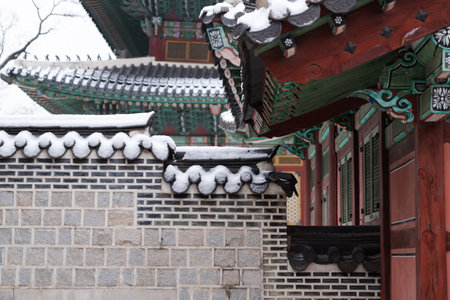 Korean traditional architecture, wintertime landscape of Korean palace 123