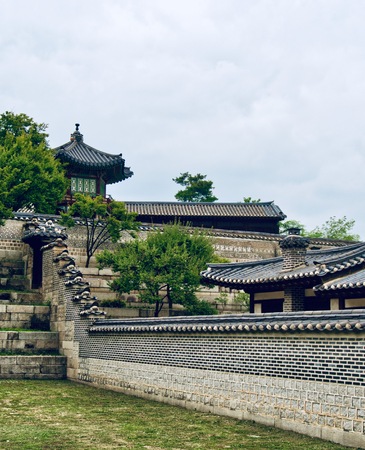 Seoul, South Korea - July 25, 2020: Inside the Gyeongbokgung Palace. Most important royal palace of Joseon Dynasty, cultural heritage of South Korea. In the heart of Seoul with pavilions and temples
