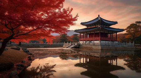 Generative AI : Gyeongbokgung Palace in Autumn Seoul South Korea
