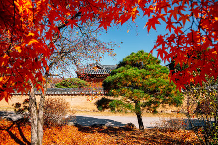 Changdeokgung Palace with autumn maple in Seoul, Korea