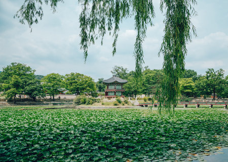 hyangwonjeong a small pavilion in gyeongbokgung in seoul. Taken during warm summer day