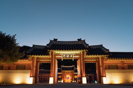 SEOUL / SOUTH KOREA - 10.30.2019: National architecture of Seoul, preserved to this day. Beautiful evening view