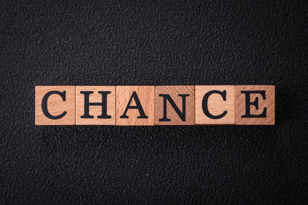 The inscription chance or change with wooden cubes on a dark concrete background. Can be used as part of your composition