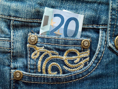 Euro banknotes in jeans. Abstract photo of money spending and money security, safety.