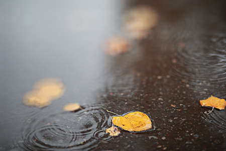 Rainy day in the city. Raindrops on the asphalt.