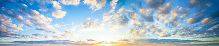 Panorama of blue sky with cloud at sunset. Panoramic image.