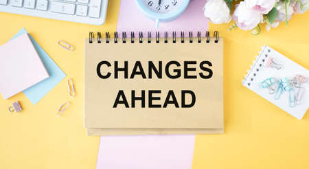 CHANGES AHEAD notepad writing on the white background with pencil and glasses