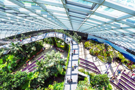 Beautiful tropical gardens and architecture in the Cloud Dome, at the Gardens By the Bay, in Singapore