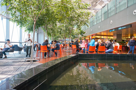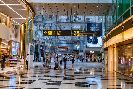 Singapore-4 Nov 2025: Singapore Changi Airport with tourists and visitors from all around the world. Changi Airport is one of the busiest airport in the world