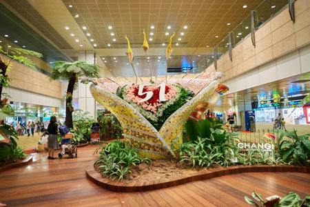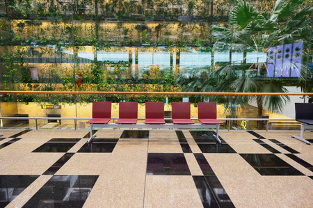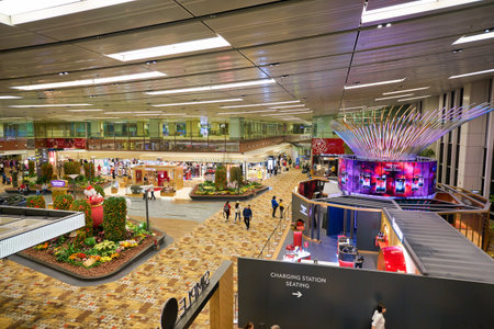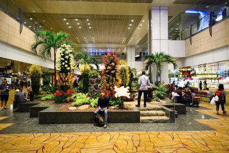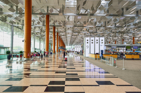 SINGAPORE - CIRCA AUGUST, 2016: inside of Singapore Changi Airport. Singapore Changi Airport is the primary civilian airport for Singapore, and one of the largest transportation hubs in Southeast Asia.