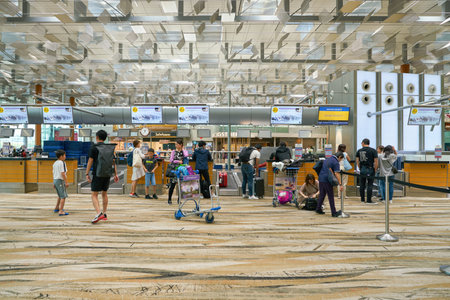 SINGAPORE - CIRCA APRIL, 2019: check-in area at Singapore Changi International Airport, Terminal 3.
