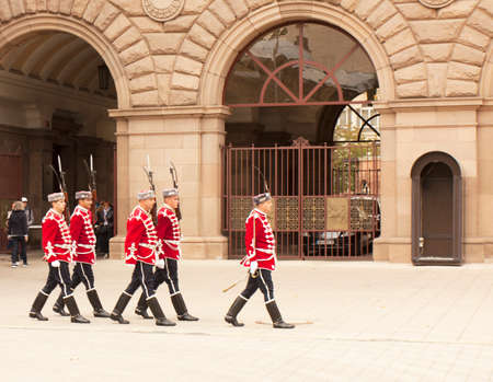 SOFIA, BULGARIA - OCTOBER 09, 2017: guards near President palace built in 1956 year.