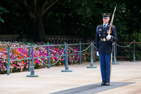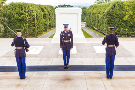 WASHINGTON,USA - JULY 15: changing the guard in the afternoon at the grave of the unknown soldier at the cemetery of Arlington on July 15,2010 in Washington, USA