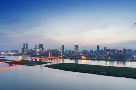 aerial view of the beautiful changsha cityscape and the bridge on xiang river, hunan province, China
