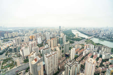 City buildings and river bank landscape in Nanning, Guangxi, China