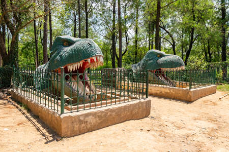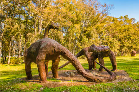 Dinosaurs sculptures at Grutas del Palacio, unique geopark located on Flores department, Uruguay