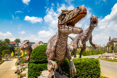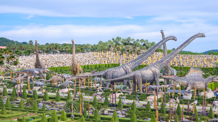 PATTAYA, THAILAND - FEBRUARY 23, 2020: Dinosaur Valley? in Nong Nooch Tropical Botanical Garden, Pattaya, Thailand in a sunny day